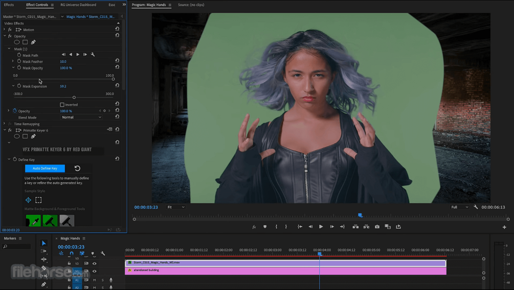 VFX Suite gives you fast, automatic chroma keying. Whether you are using a green screen or blue screen, Primatte Keyer can regularly pull a perfect key with a single click. Primatte’s cleanup tools help turn even the most difficult shots into solid and professional composites. Take your chroma keying results even further by using Primatte in combination with Supercomp’s post-keying tools.